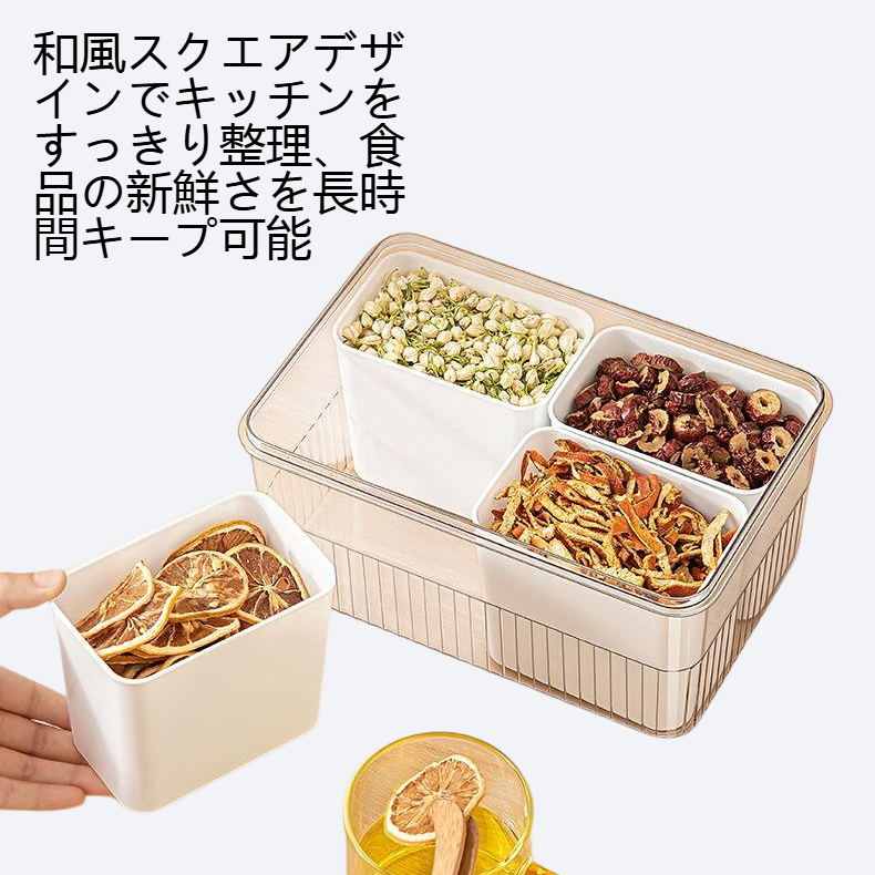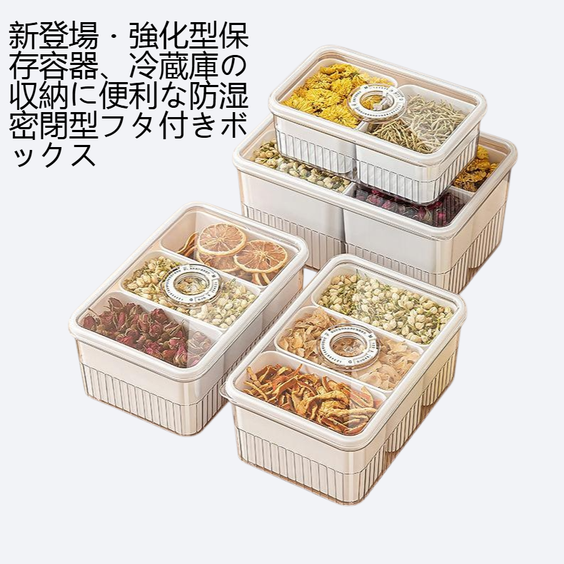 カラー:食品グレード高透明保存容器-フルーツ・漢方薬・お茶用-2区切り、食品グレード高透明保存容器-フルーツ・漢方薬・お茶用-3区切り、食品グレード高透明保存容器-フルーツ・漢方薬・お茶用-4区切り