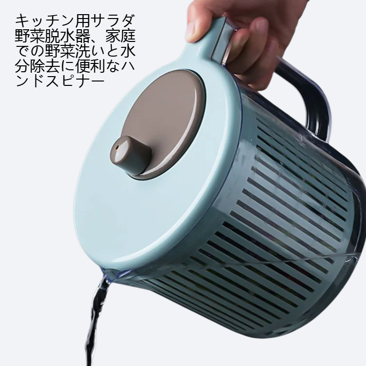 新鮮な野菜の水切りが簡単にできるキッチン野菜脱水器。サラダや調理の時短に最適。コンパクト設計で収納も便利。
