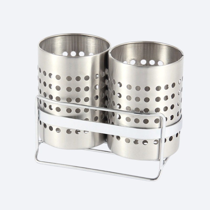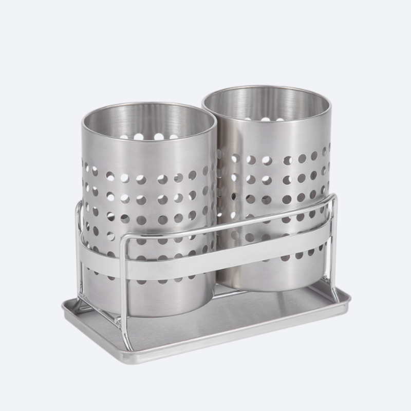 ステンレス二重食器水切り収納筒